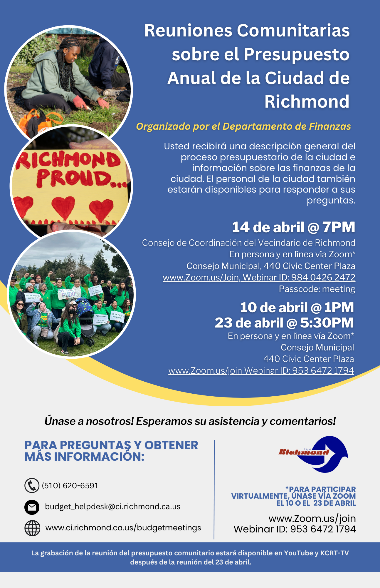 The City of Richmond Community Budget Meetings provides the community an overview of the City’s budget process and the current financial standing.