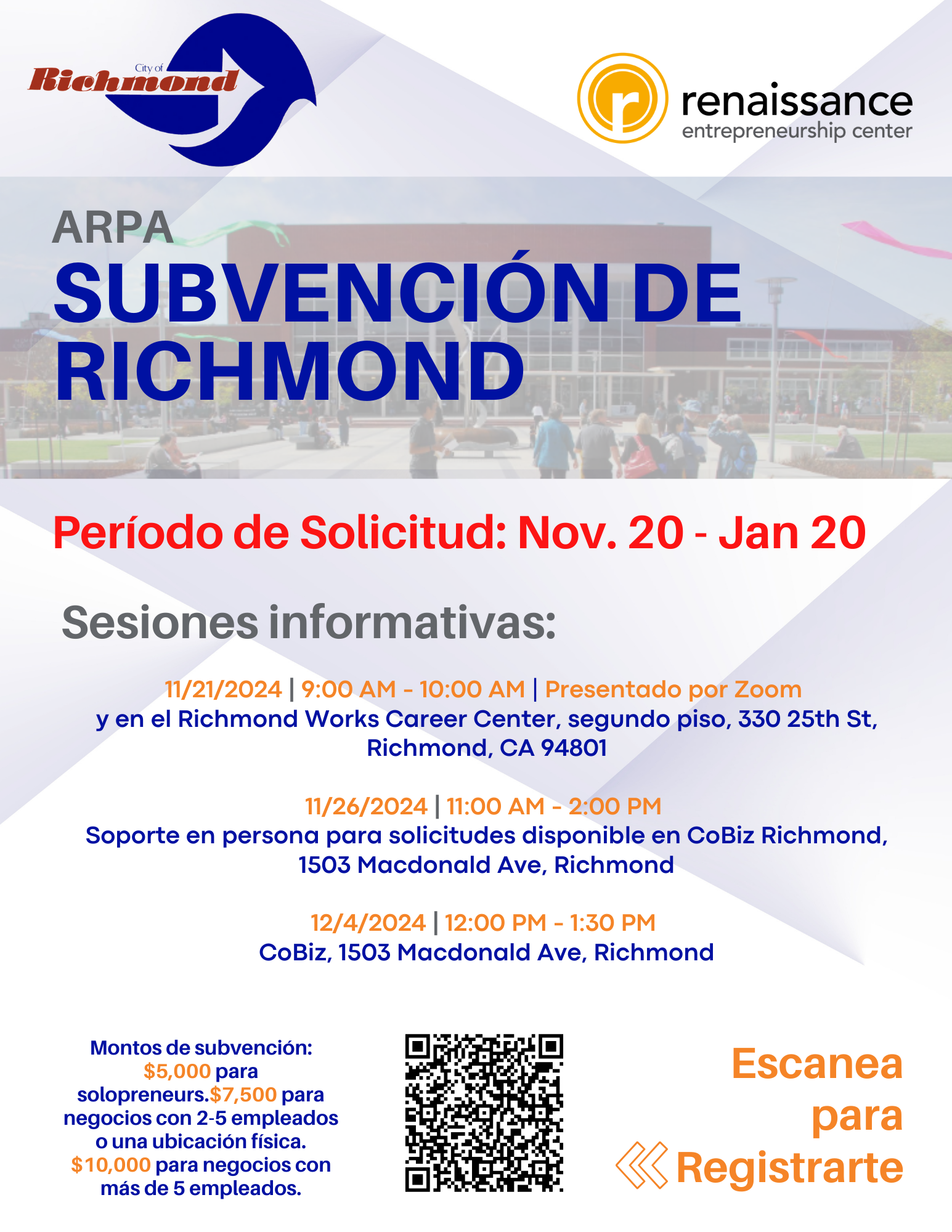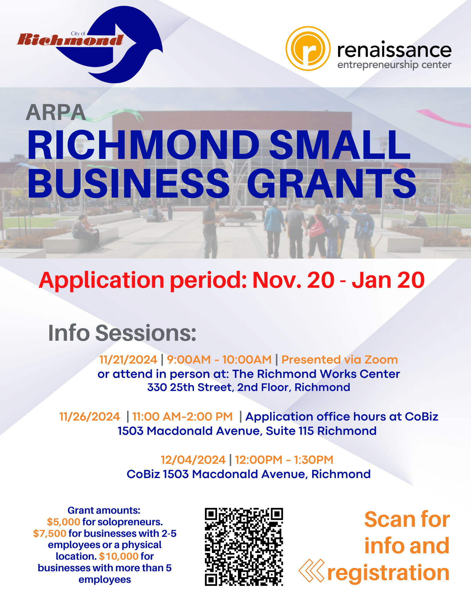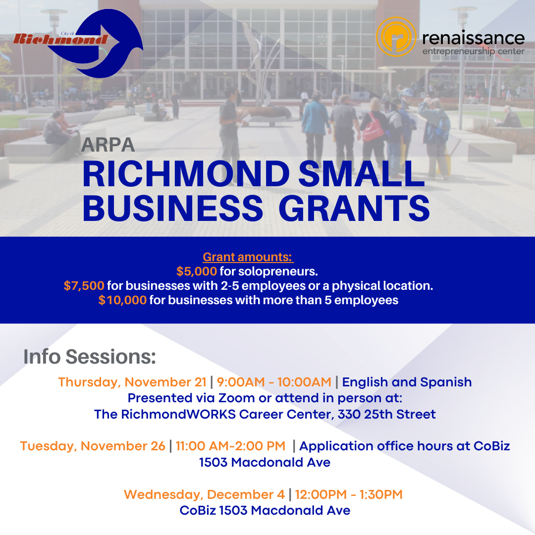 Eligible entrepreneurs are encouraged to continue participating in free business workshops, consultations, and capacity-building programs offered in partnership with the City of Richmond.